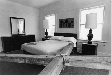 In May 1971, a travel brochure circulated around the creative set of Los Angeles. In typeface borrowed from a Chinese takeout menu, the leaflet promised “the finest accommodations at the most reasonable rates” in Hollywood. Al’s Grand Hotel was the ruse de arte of Allen Ruppersberg: for six weeks, guests could stay in one of his seven themed rooms (tucked within a suburban Craftsman-style shell), from the Jesus Room replete with a massive cross abutting the bed to the “B” Room – fully stocked for B-list parties, picnic basket and all. Tomorrow, Al’s reemerges as a pop-up installation at the Frieze New York, restaged by L.A. art force Public Fiction (as one of six Frieze Projects curated by the High Line’s director of art programming Cecilia Alemani). Sited within the fair tent on Randalls Island, the hotel will only be open for four nights starting tonight, at inflation-adjusted rates (then: $15-$30 per night; now $350-$375, dinner and breakfast included). Bookings are granted by calling 646-578-8471; a robotic female recording will ask you to leave your name, number and desired dates, one night (stands) only; then, await a call; only eight people plus companions are fated to be guests. Al’s reincarnation feels – albeit at a remove – akin to the woman’s indulged expression on this tee (part of a Gap and Visionaire collab collection for Frieze featuring 11 artist-designed t-shirts, available tomorrow at select retail locations). In its original iteration, Al’s engaged viewers as consumers, requiring their participation, and during its spring lifespan, the hotel became a hub for happenings, performances and parties – an art historical landmark. Can Al’s restaging stoke as much vitality in a blink with two beds?